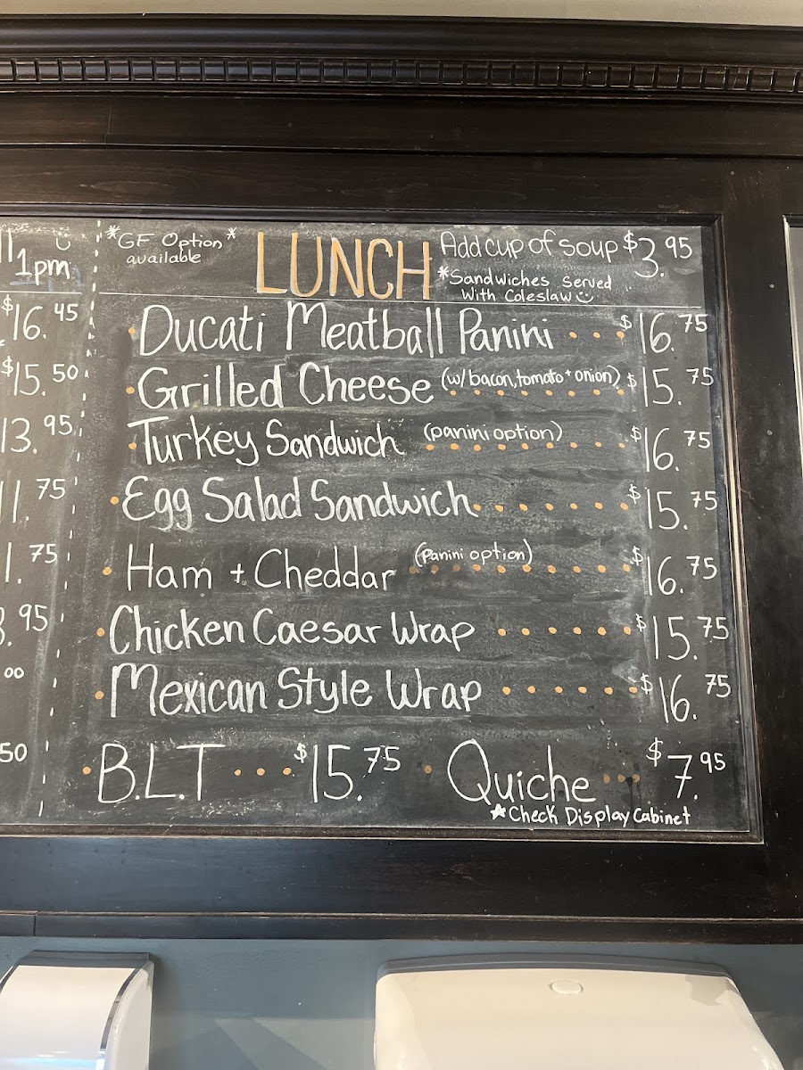 For lunch, the options are equally enticing. The Ducati Meatball Panini is a crowd favorite, bursting with flavor, while the Grilled Cheese offers a comforting classic. Health enthusiasts will appreciate the Chicken Salad Wrap—a fresh and wholesome choice that has received rave reviews for both taste and presentation.