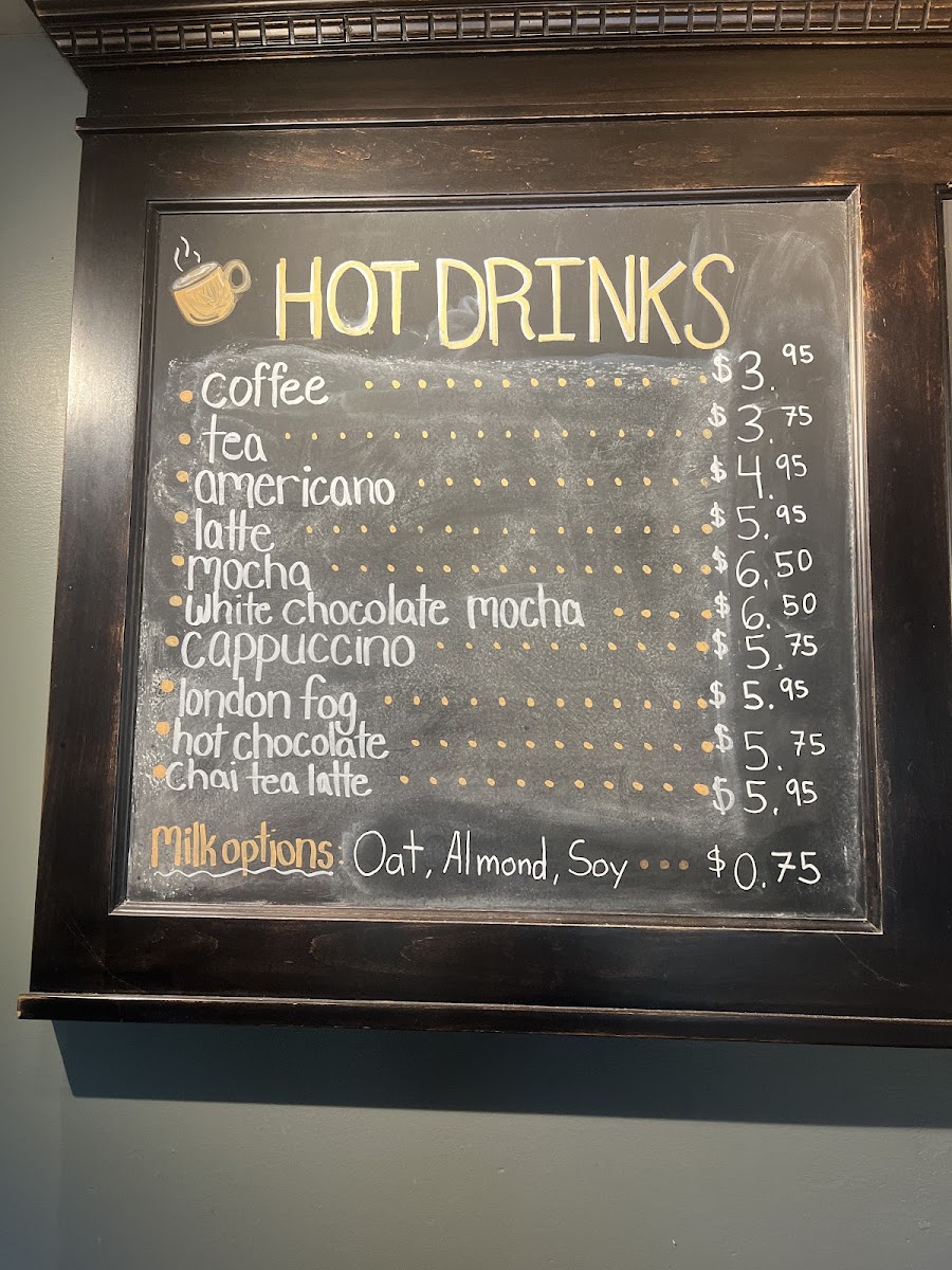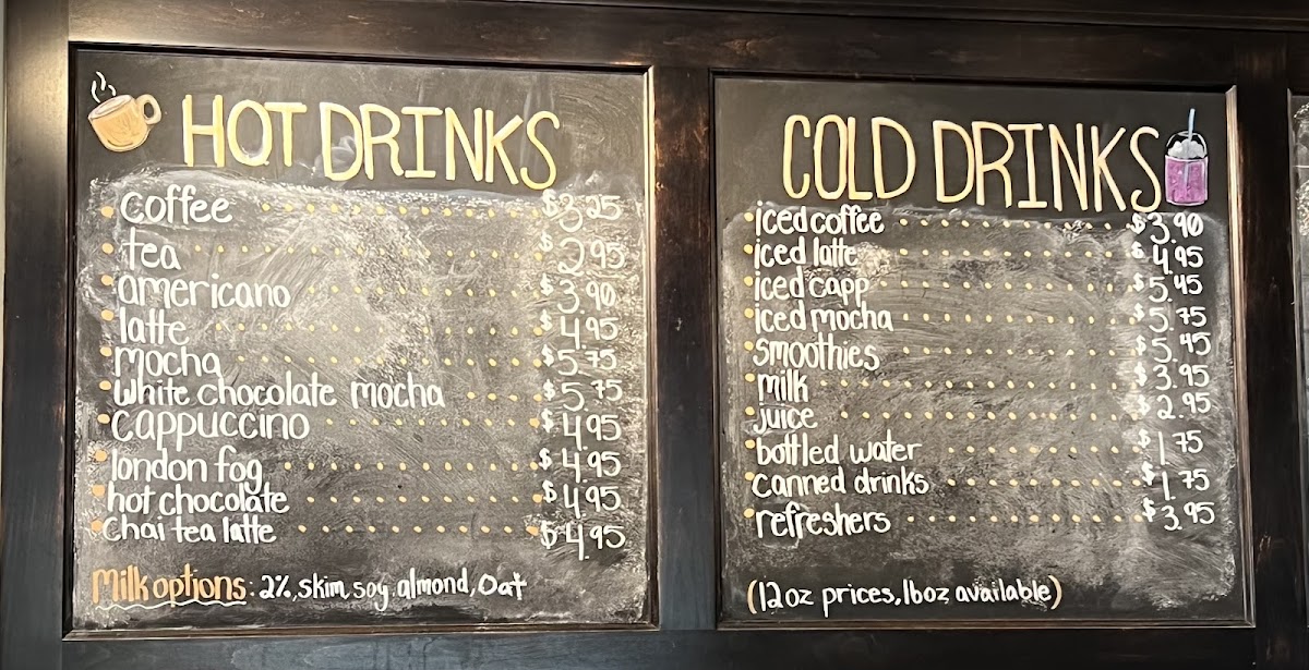 The menu features a tempting selection of hot and cold drinks, sandwiches, and wraps that cater to a variety of tastes. Start your day with a steaming Americano or indulge in a decadent White Chocolate Mocha. If you're looking for something refreshing, try their Iced Coffee or one of their satisfying smoothies.